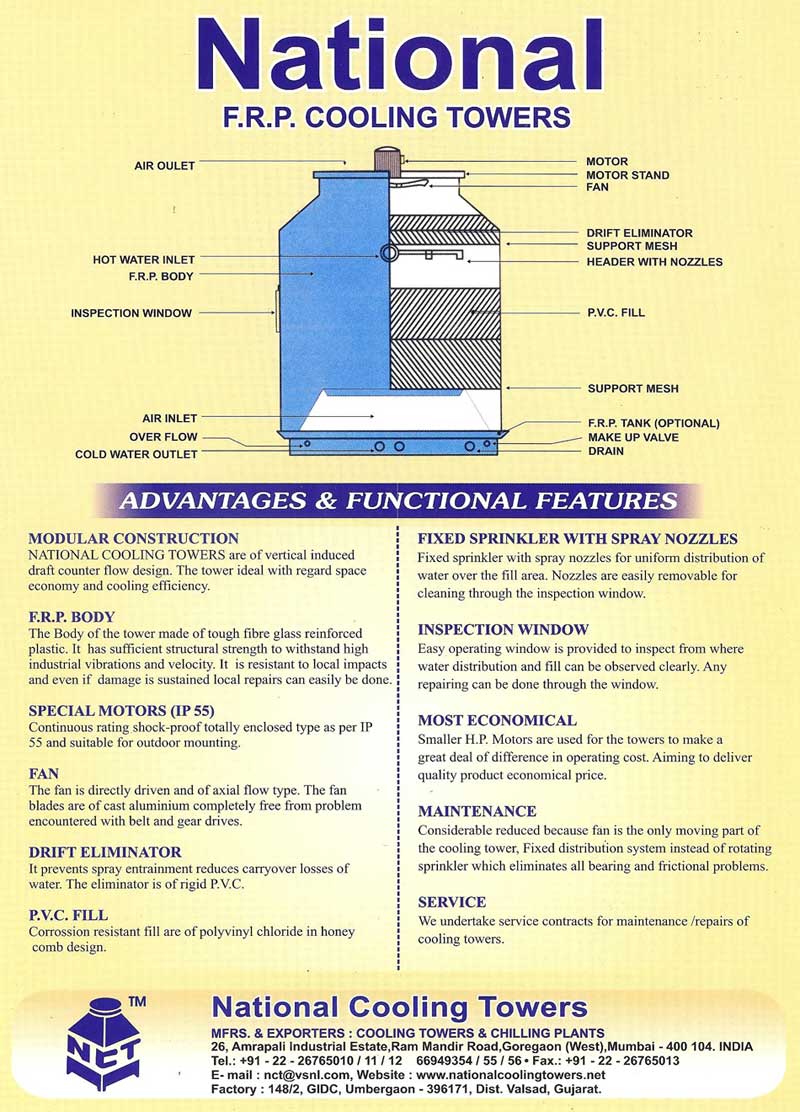 NATfONAL COOLING TOWERS are of vertical induced draft counter flow design. The tower ideal with regard space economy and cooling efficiency.