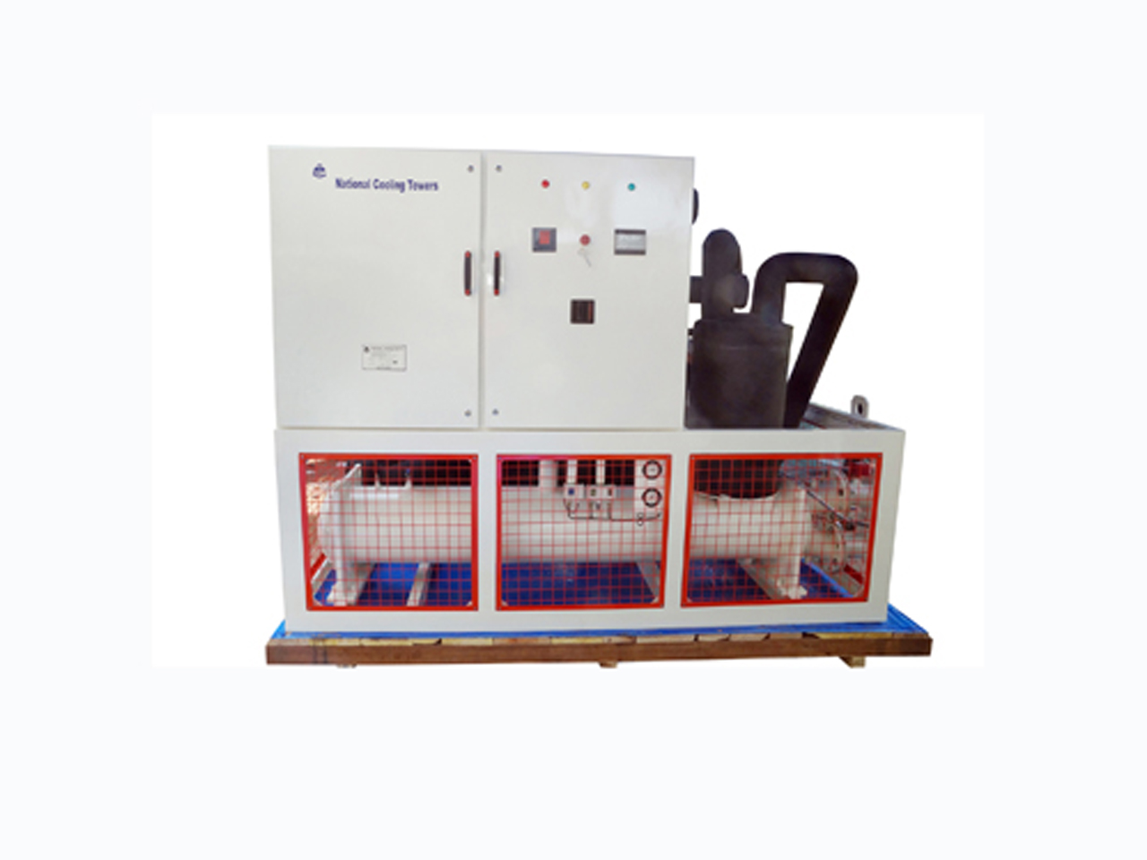 National Cooling Towers make Brine Chillers for application demanding temperatures ranging from + 6 to C to -65 o C. Our Brine Chillers are unbelievably compact and modern. The Use of hermetically sealed compressor form Emerson, Danfoss and Copeland have made our chiller packages highly energy efficient. Further, the use of sophisticated two stage compressors with sub-cooler and related accessories have eased the achievement of temperatures as low as-65 o C. Our chiller packages can be integrated with insulated brine storage tank and re-circulating pump. These chillers find wide application in chemical process plants, anodizing / electroplating plants, laboratory applications, latex cooling etc.